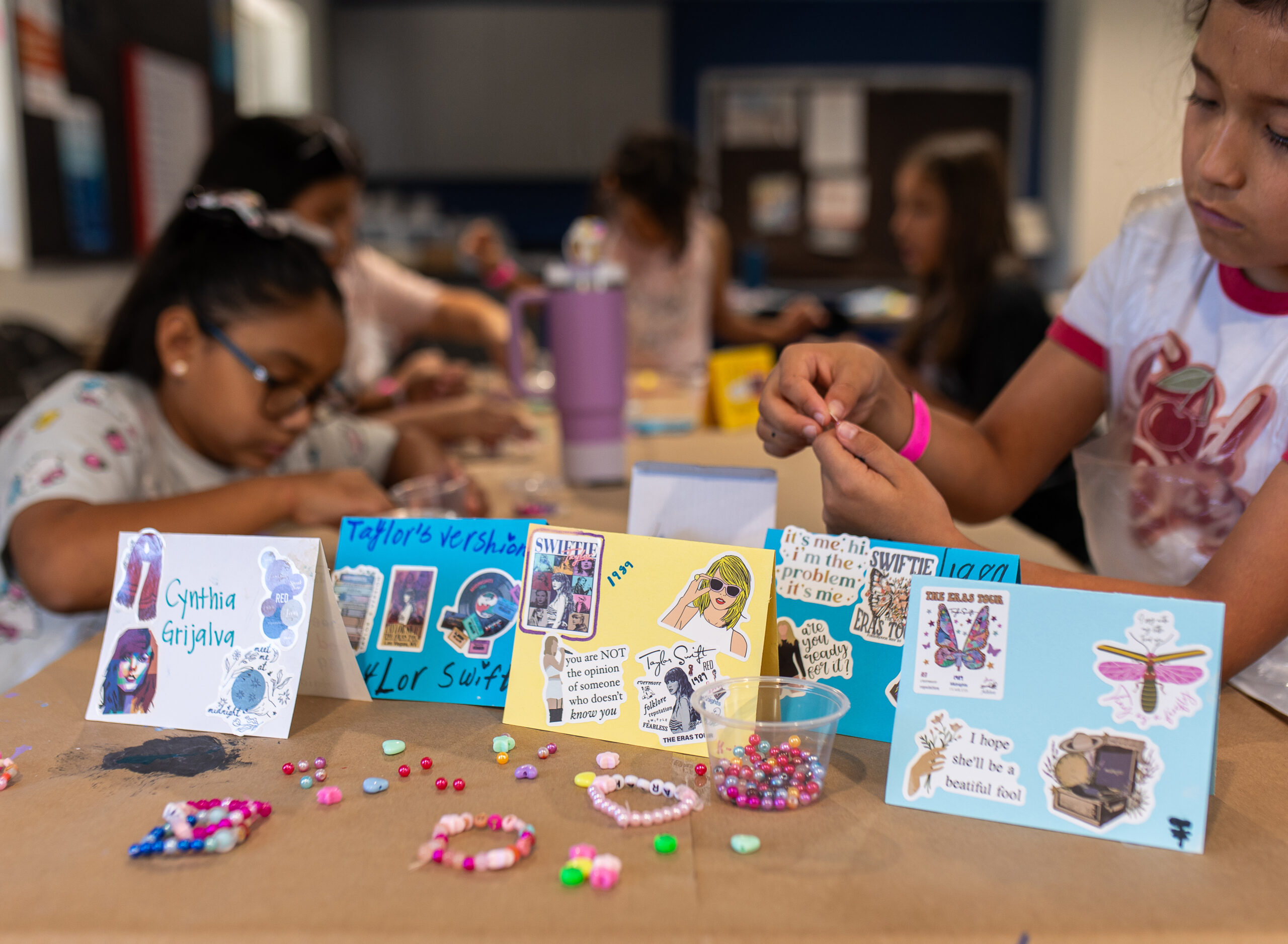 Shake It Off offers students a fun and creative opportunity to dive into the world of Taylor Swift, exploring her cultural impact through arts and crafts. Through a variety of hands-on activities, students will express themselves artistically while also gaining insight into the themes and messages that Taylor Swift’s music represents. The camp emphasizes not only creativity but also the empowerment that comes from self-expression and the lessons found within Swift’s work. Each day introduces a new creative challenge inspired by Taylor Swift’s music and style. Students will design personalized “Junior Jewels” friendship t-shirts, craft origami “Eras” flower bouquets, and decorate heart-shaped sunglasses, capturing the essence of Swift’s iconic aesthetics. These activities encourage personal expression while also allowing students to engage with elements of pop culture that resonate with their generation. Beyond crafting, this camp provides an opportunity to reflect on and discuss the deeper themes in Taylor Swift’s music, including friendship, and women’s empowerment. Students will explore how these messages have shaped modern society and how they can apply these values to their own lives. The camp seamlessly integrates these discussions into creative projects, creating a deeper connection to the art being made.